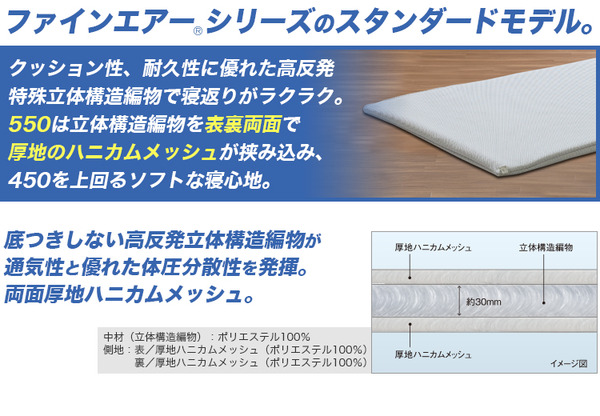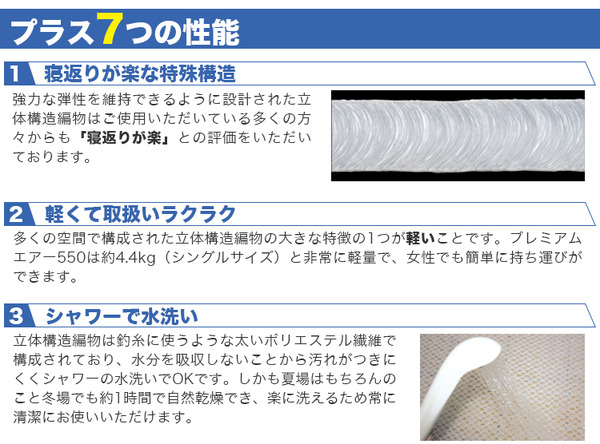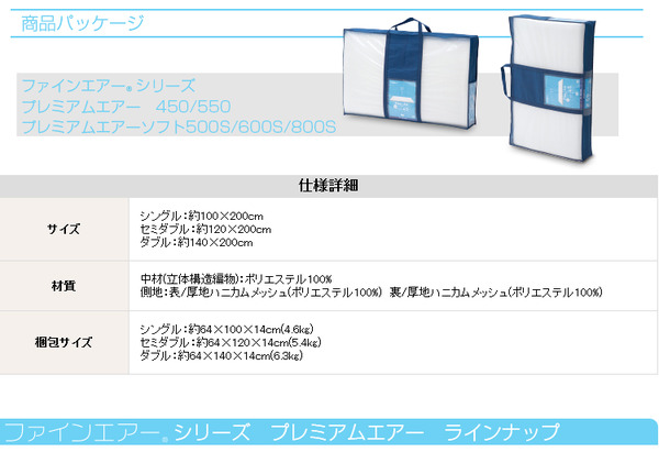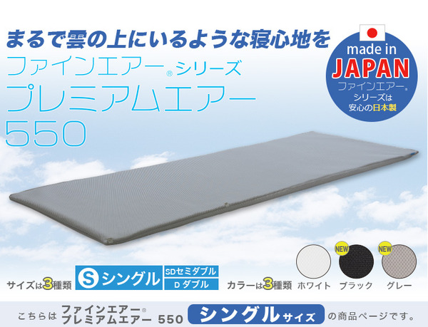 - 高反発マットレス 【シングルサイズ/ホワイト】 スタンダード W厚地タイプ ファインエアー(R)シリーズ プレミアムエアー550 洗える 日本製