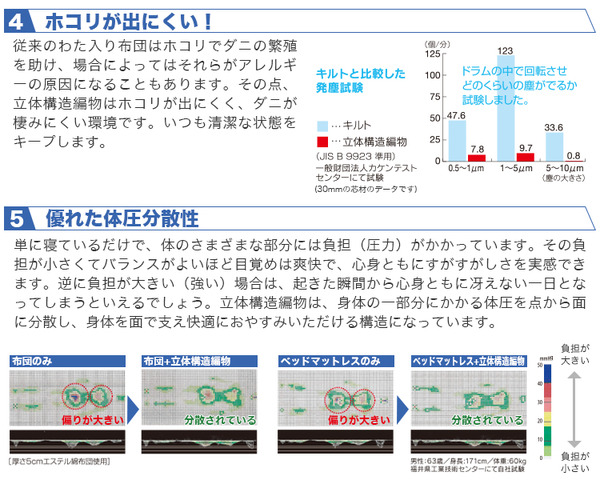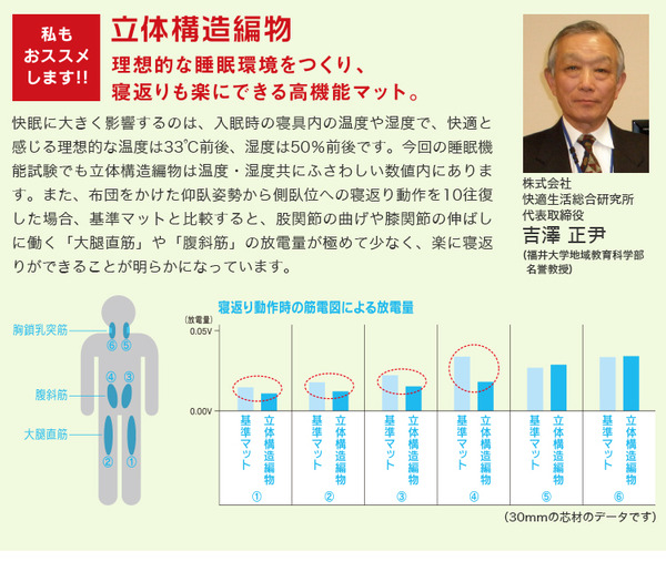 強力糸で支える立体構編物により底つき感を減らして全身を支えます!