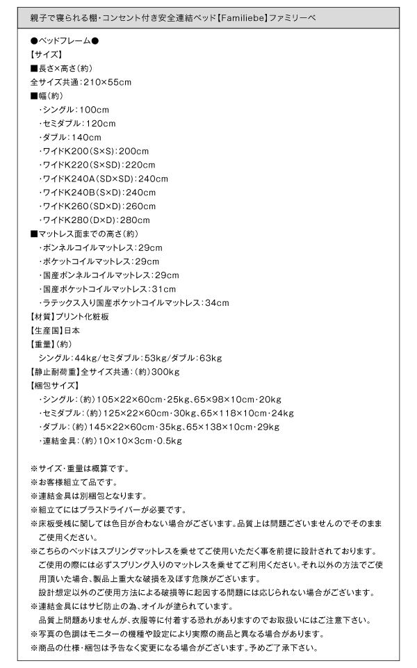 ※連結金具はセット購入時にのみ付属いたします。ベッド1台ずつの購入では金具がつきませんので、ご注意ください。