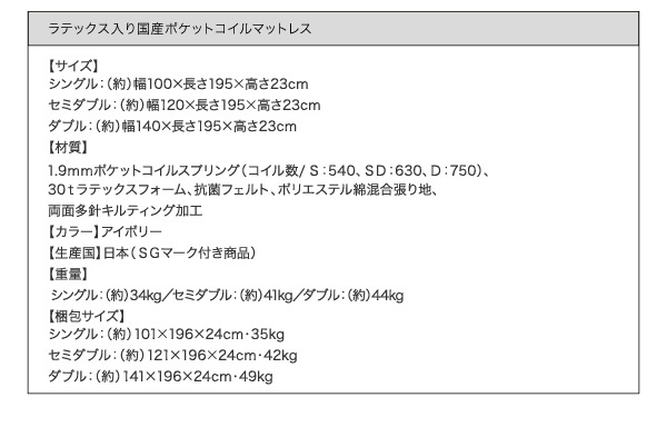 ●ラテックス入り国産ポケットコイルマットレス●
