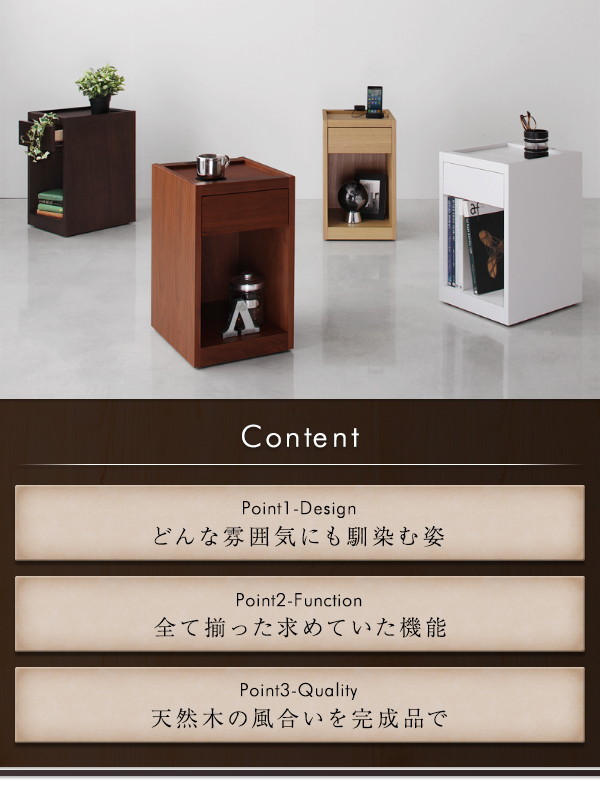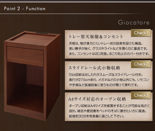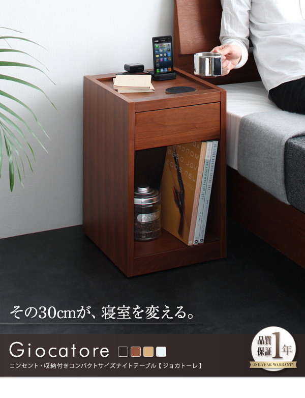 コンセント・収納付きコンパクトサイズナイトテーブル【ジョカトーレ】