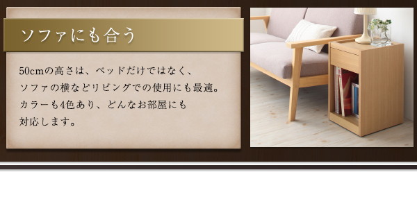50cmの高さは、ベッドだけではなく、ソファの横などリビングでの使用にも最適。