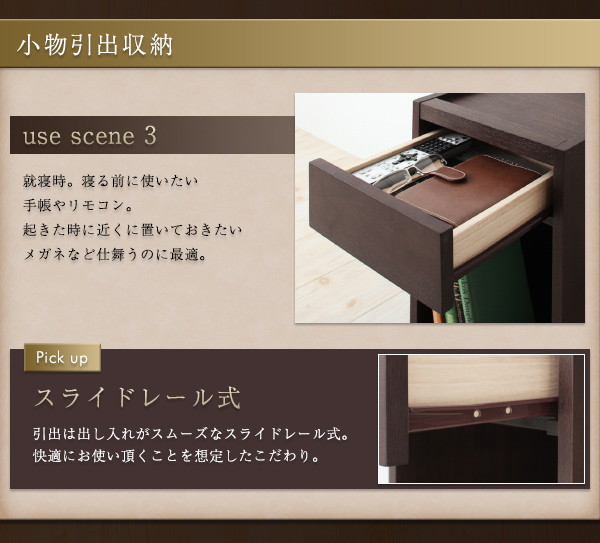 起きた時に近くに置いておきたいメガネなど仕舞うのに最適。