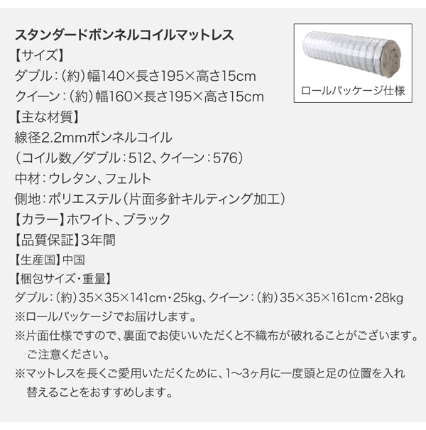 ※本製品はコイルマットレス使用時の基準で強度計算されております。床板の上に必ずコイルマットレスを敷いてご使用ください。