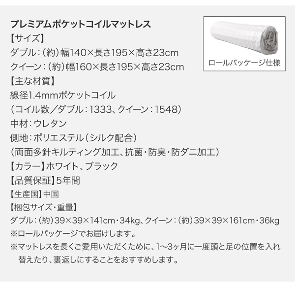 ※マットレスを長くご愛用いただくために、1〜3ヶ月に一度頭と足の位置を入れ