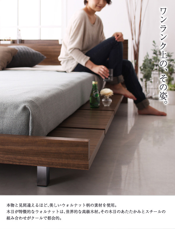 - ローベッド フレーム幅160cm 【スタンダードポケットコイルマットレス付】 クイーン(Q×1) フルレイアウト フレームカラー:ウォルナットブラウン マットレスカラー:ブラック モダンデザインローベッド FRANCLIN フランクリン
