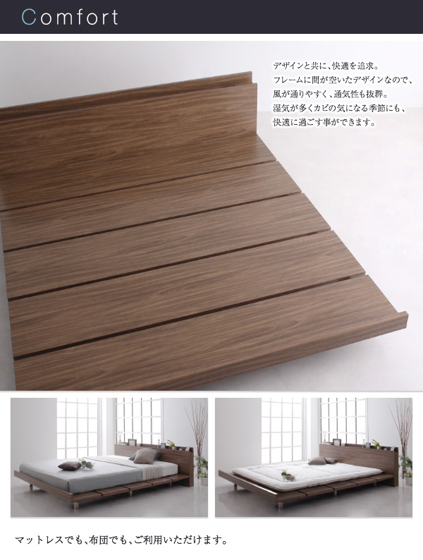 すのこタイプなので、マットレスはもちろん、布団でも使用できます。お気に入りの寝具でお休みください。