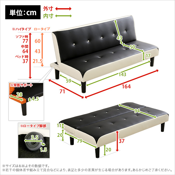 外寸:ソファ時外寸:(約)幅164x奥行き71x高さ77cm