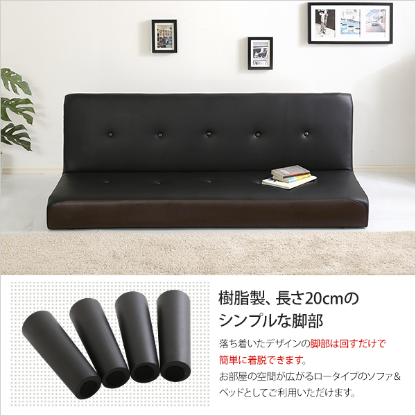 2.5人掛けレザーソファベッド 3段階のリクライニングソファで脚を外せばローソファに 完成品でお届け|Ortiz-オルティース-