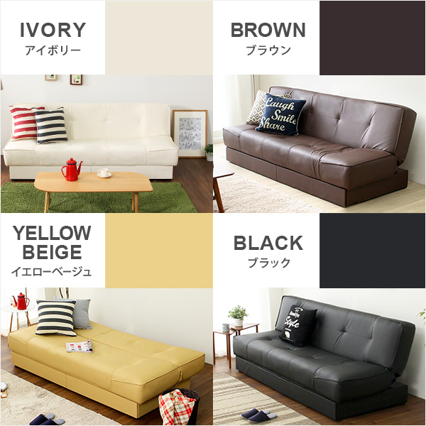 - 3段階リクライニングソファーベッド 【アイボリー】 引き出し2杯付き 日本製 『Lanaio-ラナイオ-』 【完成品】