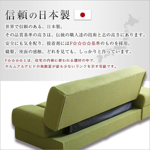 マルチソファベッド(ワイド幅197cm)スツール付き、日本製・完成品でお届け|Saul-ソール-