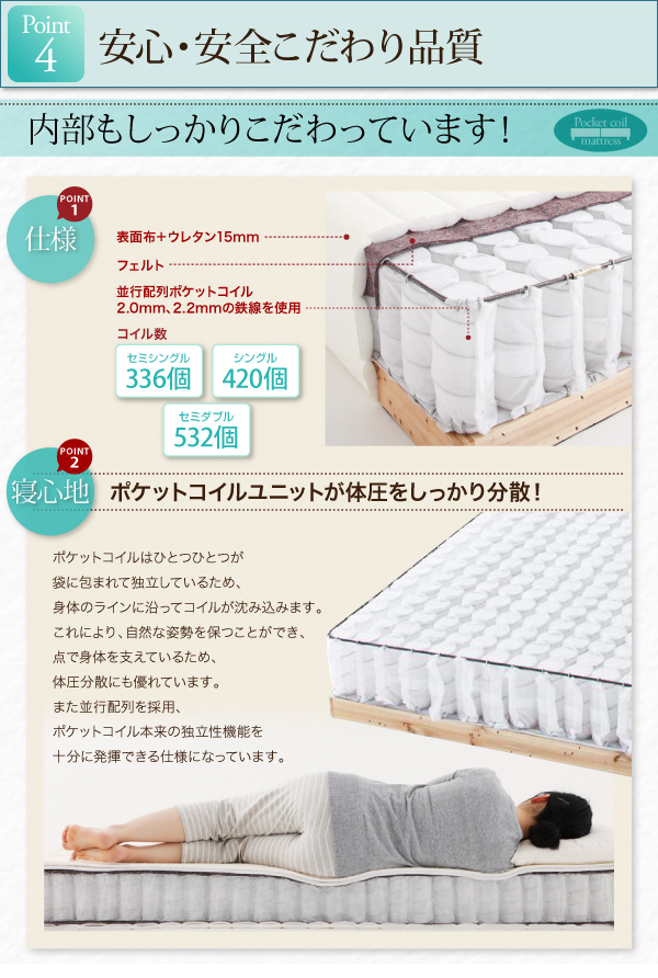 ポケットコイルユニットが体圧をしっかり分散!