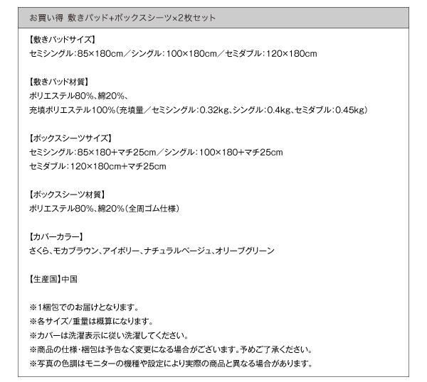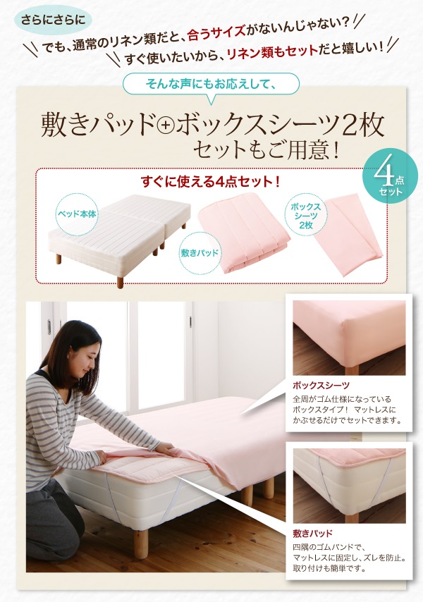 敷きパッド+ボックスシーツ2枚は別売りもございます。