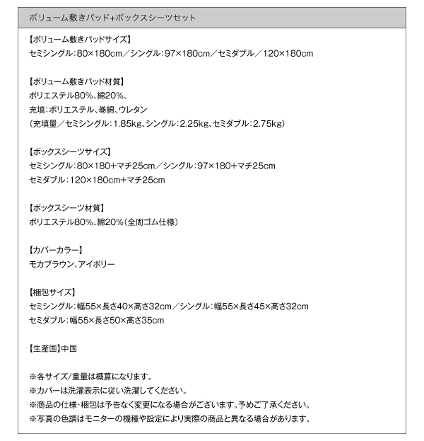 専用ボリューム敷パッド&ボックスシーツセット
