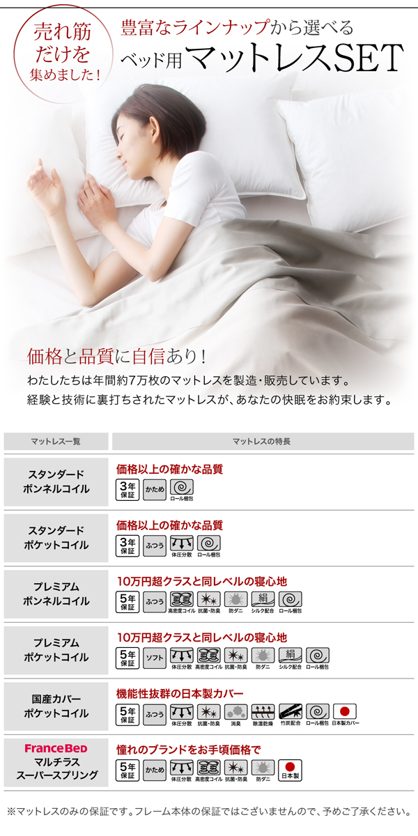 本品をご使用になる場合には、必ずスプリングマットレスをご使用下さいますようお願い致します。