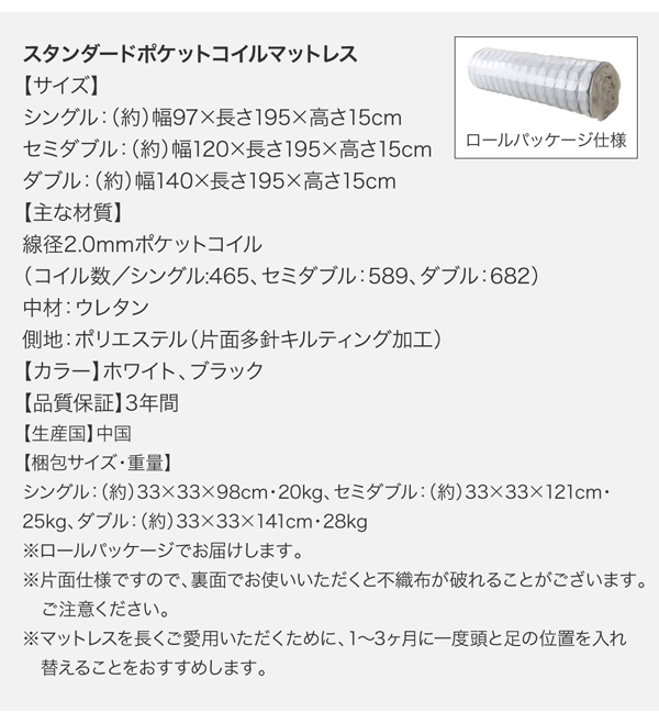 ※マットレスを長くご愛用いただくために、1〜3ヶ月に一度頭と足の位置を入れ替えたり、裏返しにすることをおすすめします。
