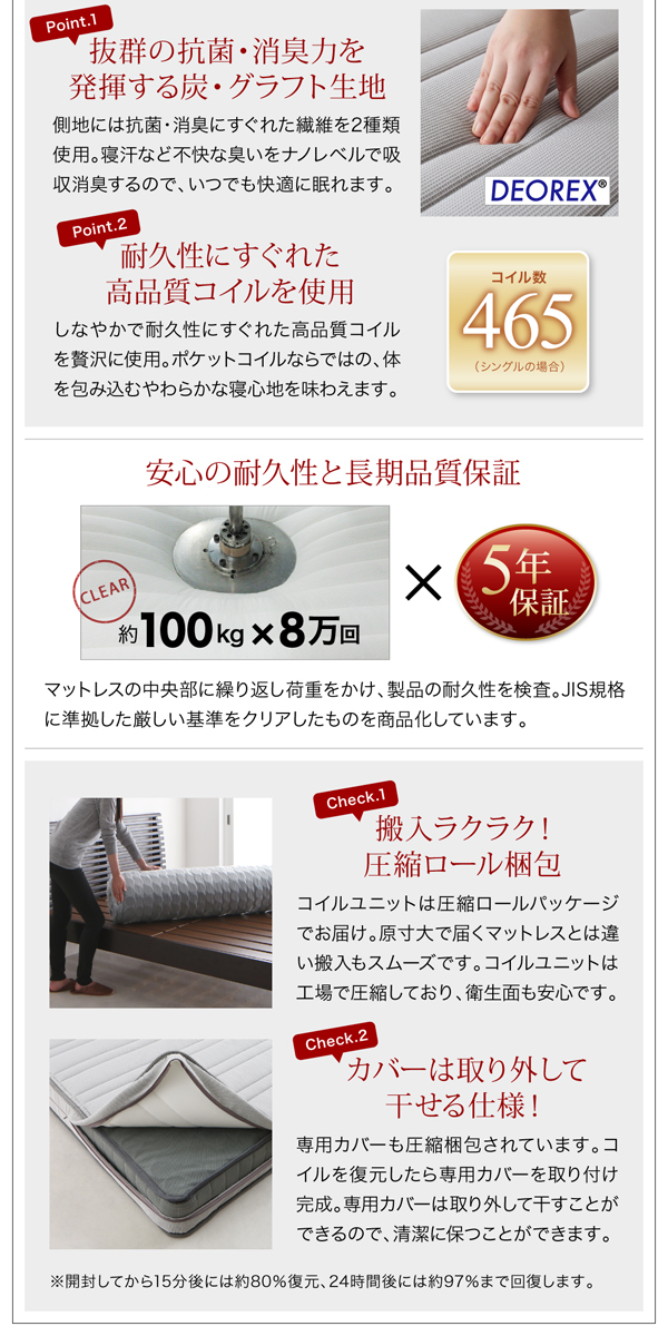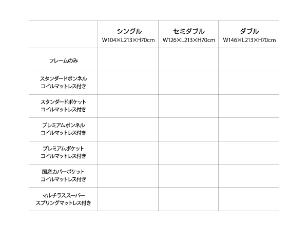 ※ベッドのフレームはスプリングマットレス使用時の基準で強度計算されております。