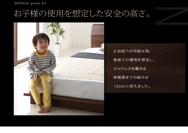 マットレスを載せる床板面までの高さは13cmに抑えました。