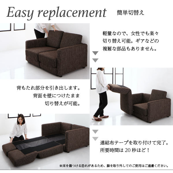 部屋が狭くてソファとベッド両方は置けない・・・けれど、おしゃれなソファが置きたい!そんな声から生まれた、シックなソファベッドです。