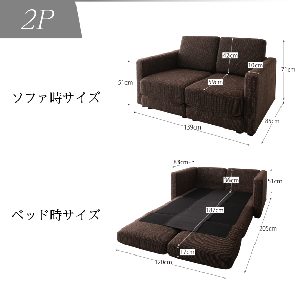 2P:(約)幅139(座面幅120)×奥行85(座面奥行59)×高さ71(座面高34)cm