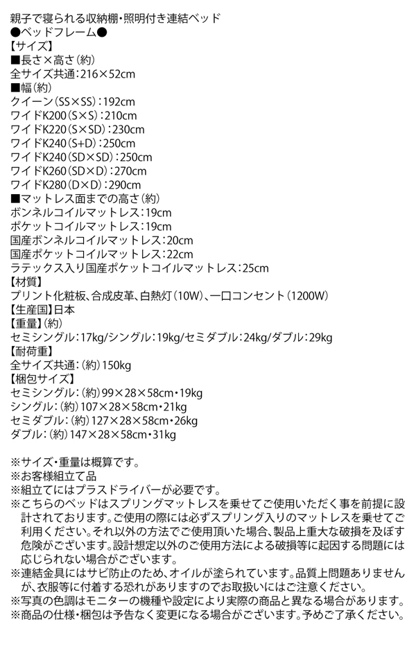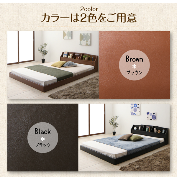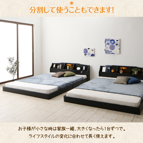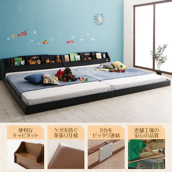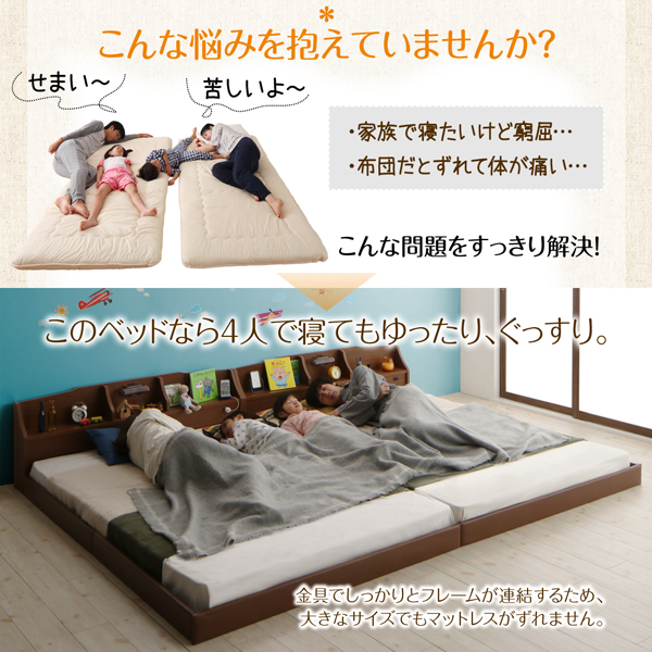 - フロアベッド ワイドK200(S×2) 【ラテックス入り国産ポケットコイルマットレス付】 フレームカラー:ウォルナットブラウン マットレスカラー:アイボリー 親子で寝られる収納棚・照明付き連結ベッド JointFamily ジョイント・ファミリー