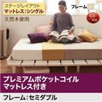 ローベッド セミダブル フルレイアウト フレーム幅120cm 【プレミアムポケットコイルマットレス付】 フレームカラー:ナチュラル マットレスカラー:ブラック 北欧デザインベッド Noora ノーラ