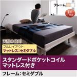 ローベッド セミダブル フルレイアウト フレーム幅120cm 【国産カバーポケットコイルマットレス付】 フレームカラー:ホワイト 北欧デザインベッド Noora ノーラ